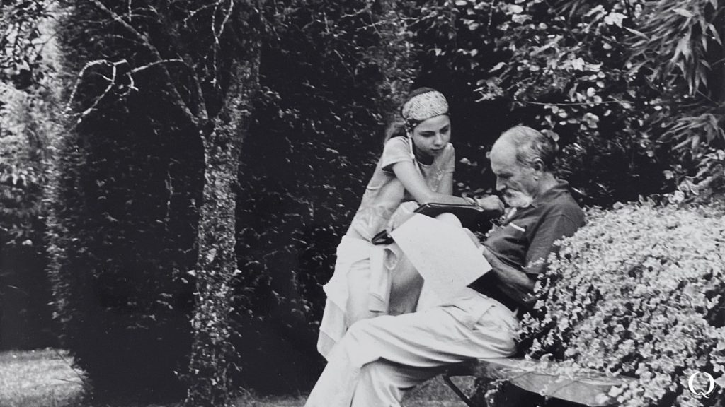 en esta foto leía sus poemas semanales con su abuelo Eduardo, el poeta, de quien heredó el don de hablar con el viento:
